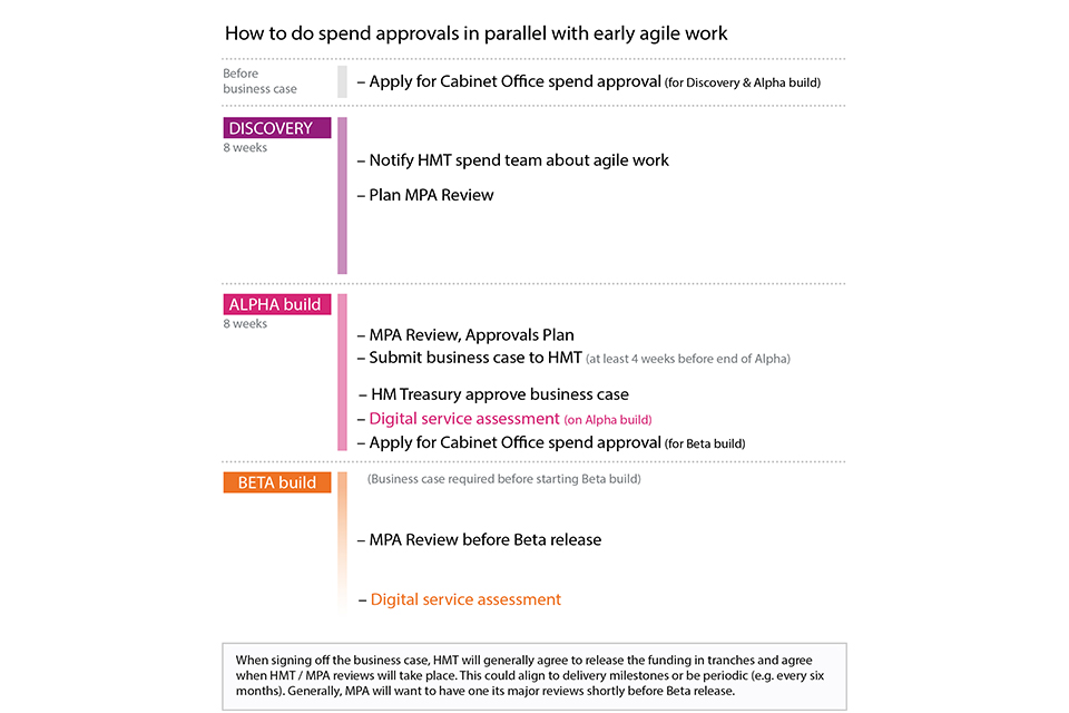 The new guidance empowers organisations to follow the Service Manual and get on with the Discovery and Alpha stages (with a pretty generous spending ceiling for this activity) without having to produce a business case for Treasury approval and then agreement to move to Beta and beyond will be dependent on a lightweight case backed up with a working Alpha.