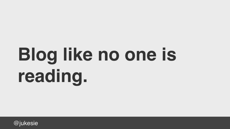 Basically as soon as I started ignoring all the user-centric rhetoric I employ everywhere else and started writing for me I found my voice and started to do my thinking in public which was a huge boon to me professionally and personally.
