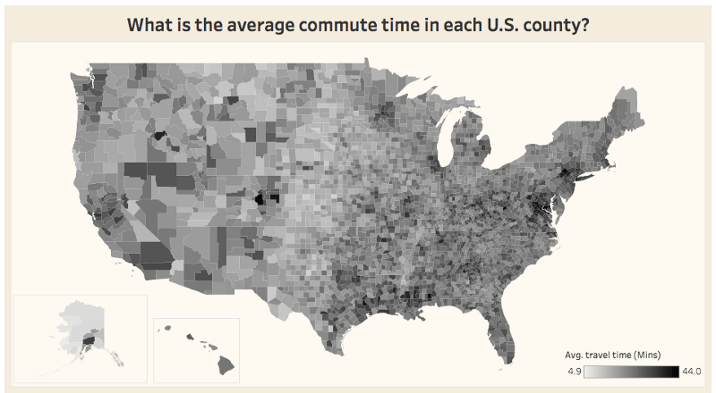 This is a nice map showing average commute times in the US based on their Census data – of course we have been offering something to this for a few years here at mySociety for the UK with Mapumental!