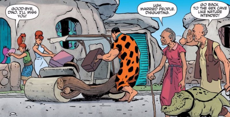 The current run of comics from DC based on the Hanna-Barbera cartoons are a mixed bag (at best). There have been some pretty odd interpretations (Wacky Races springs to mind) and some unnecessary updates (the real Scooby Doo where are you!) but the Flintstones manages to take risks, update things and be both respectful, modern, clever and fun. Plus the art is amazing.