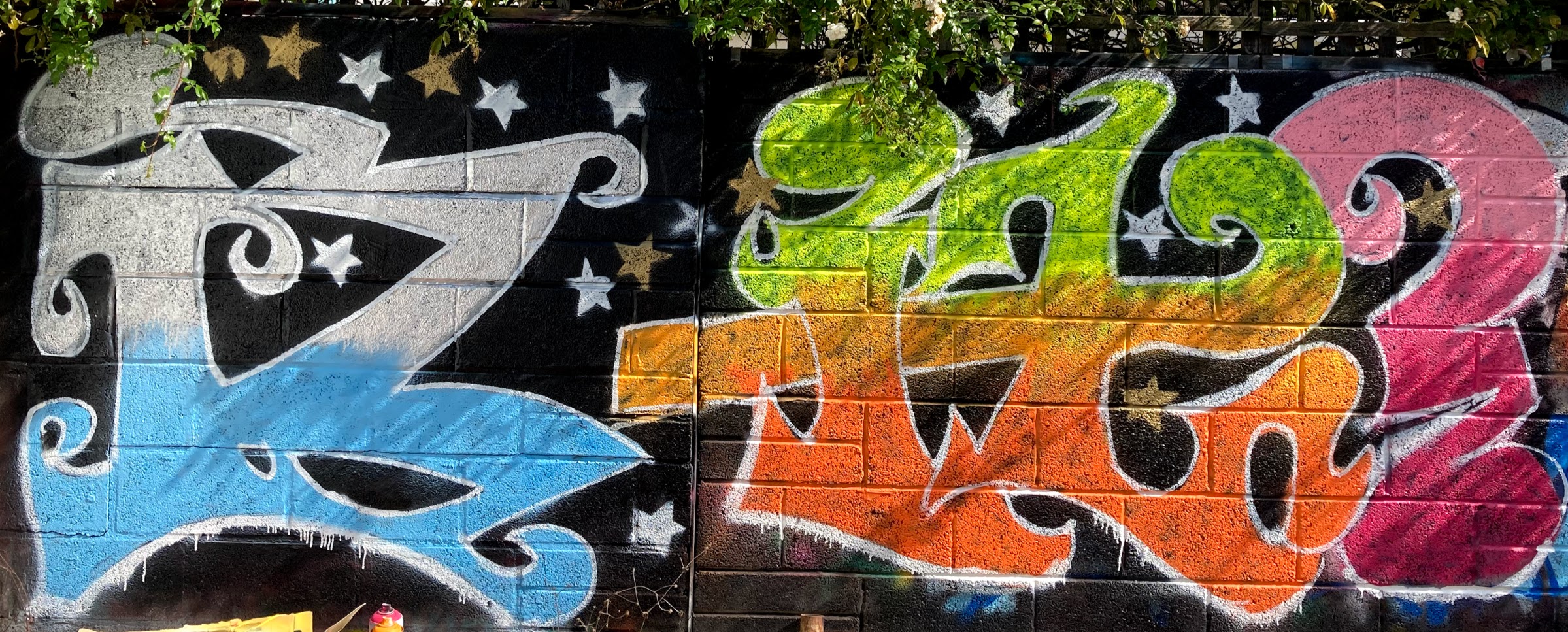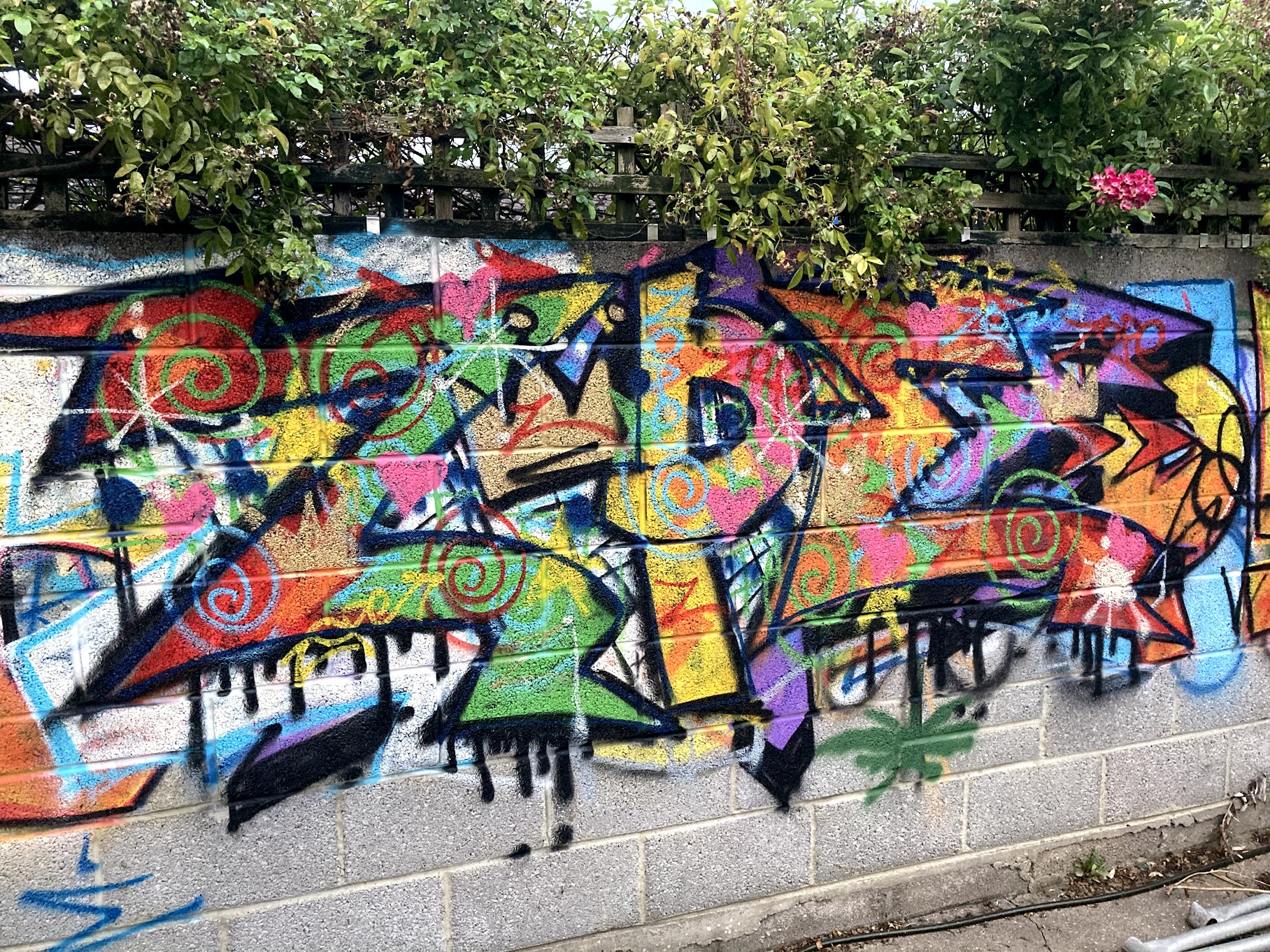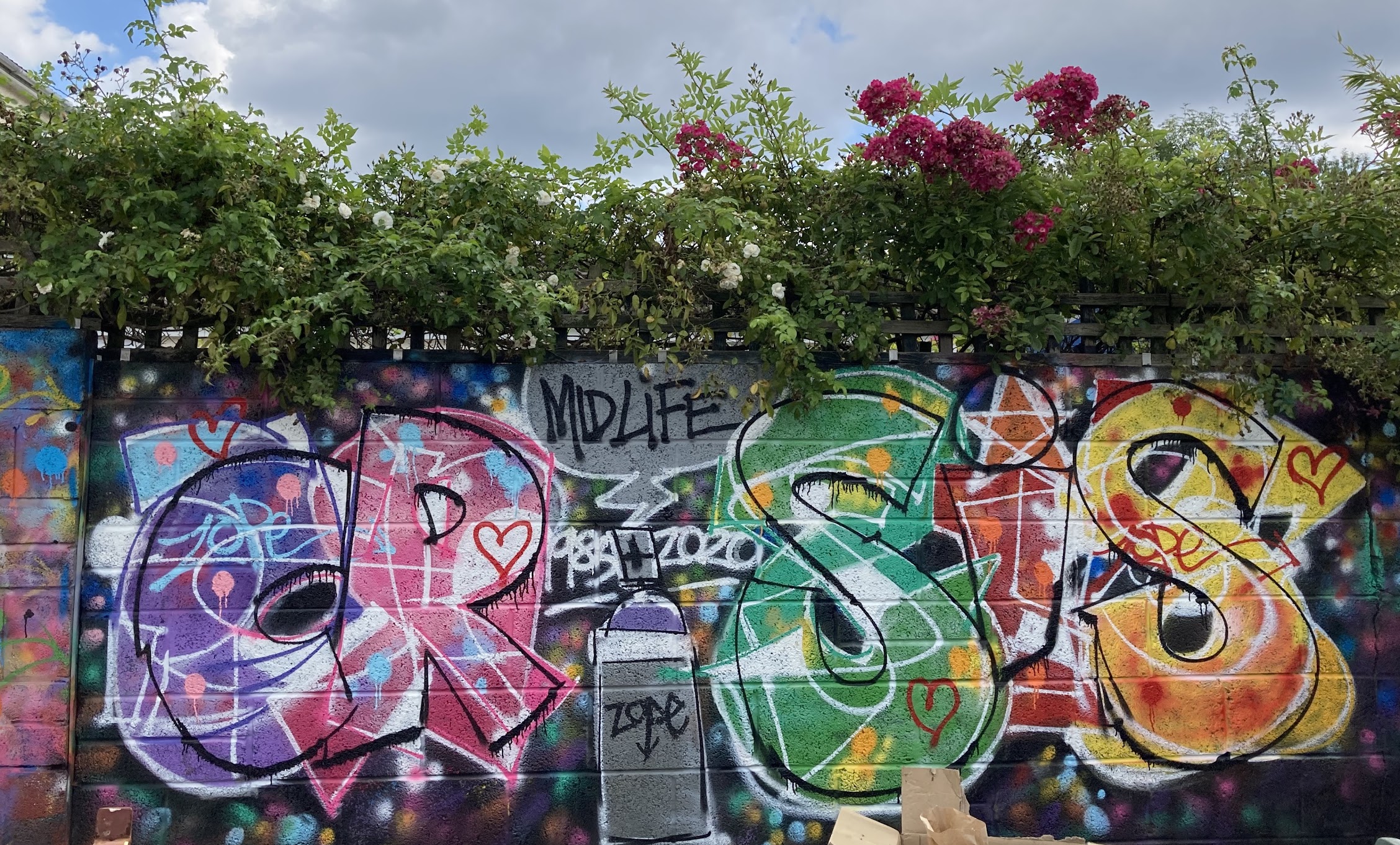 In June I was getting over my initial brush with COVID (or so I thought) and was struggling a bit with lockdown so I decided to buy a box of spraypaint and just have a bit of a play in the safety of my garden. Almost four months on and I’m still playing about – more boxes of paint have been purchased, more notebooks destroyed and I’m a bit worried the layers of paint are going to bring the wall down but it really has kept me sane these last few months.
