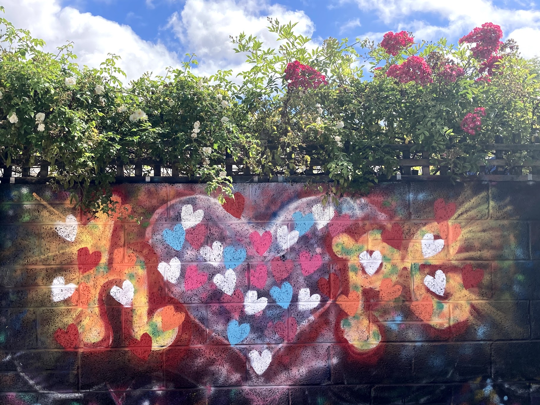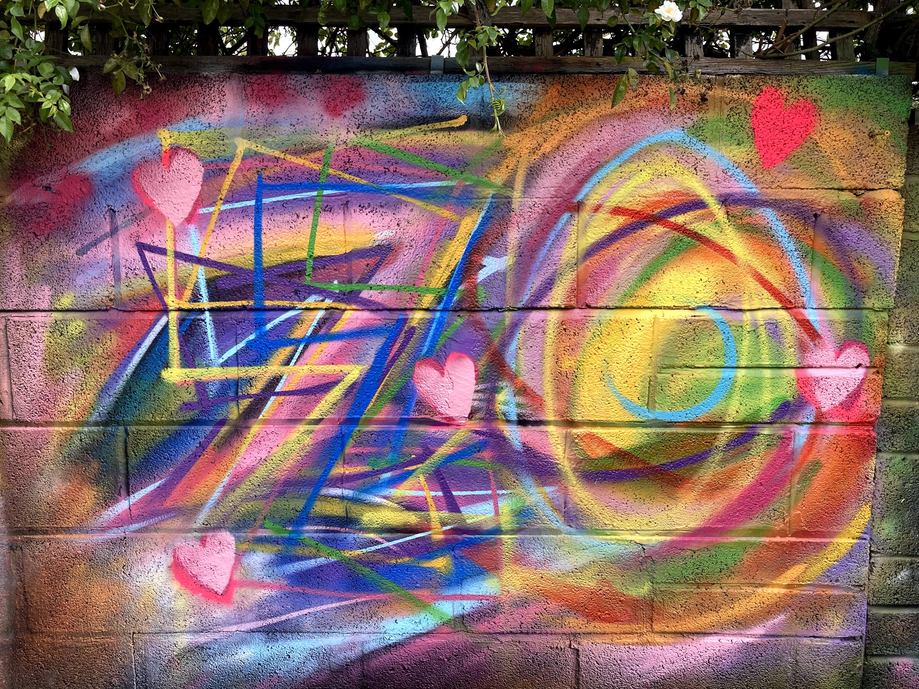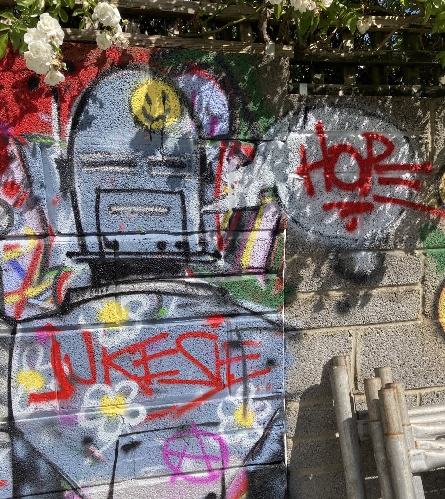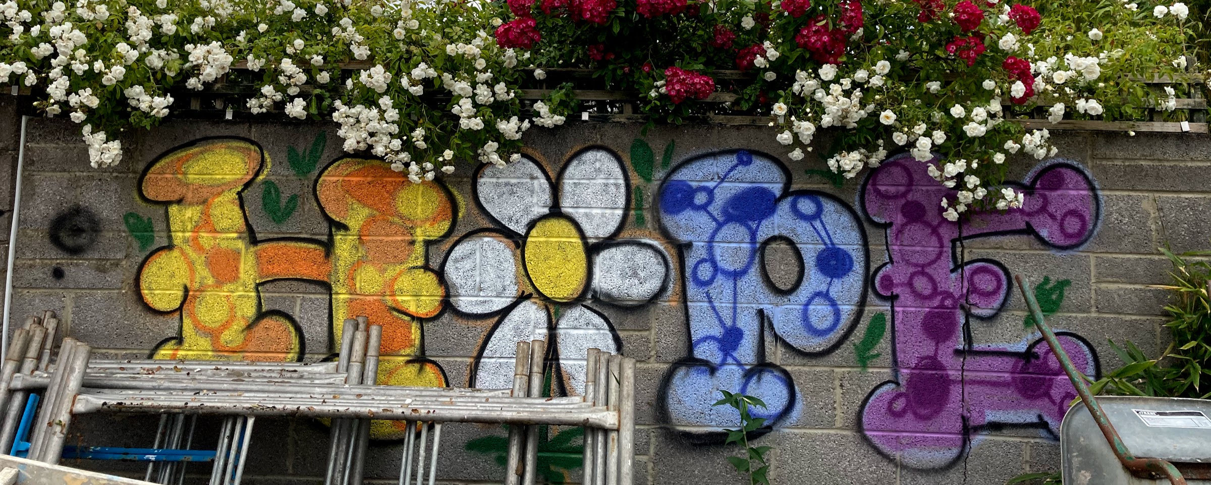 In June I was getting over my initial brush with COVID (or so I thought) and was struggling a bit with lockdown so I decided to buy a box of spraypaint and just have a bit of a play in the safety of my garden. Almost four months on and I’m still playing about – more boxes of paint have been purchased, more notebooks destroyed and I’m a bit worried the layers of paint are going to bring the wall down but it really has kept me sane these last few months.
