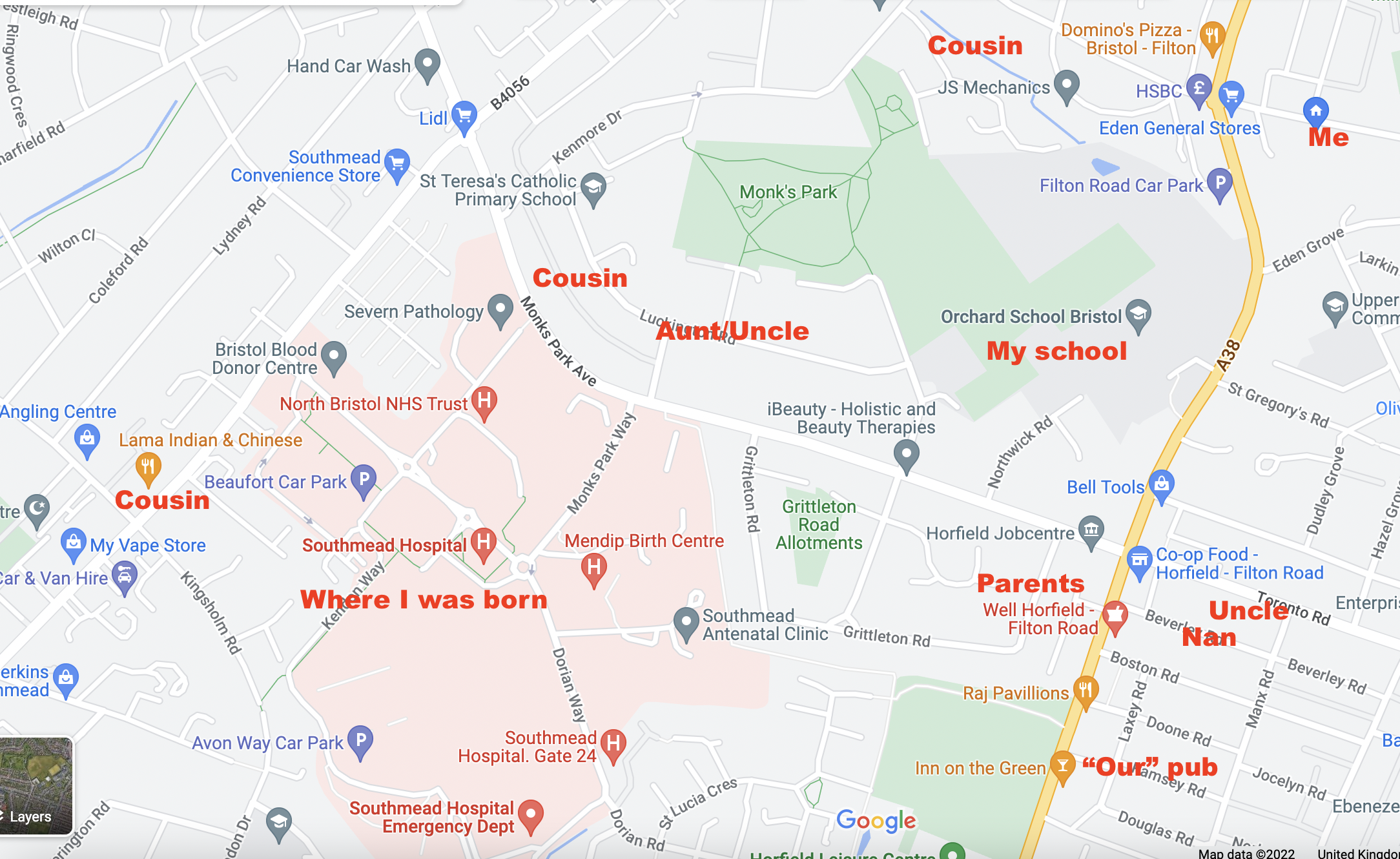 Over the years I’ve learned that my family is unusual compared to a lot of people in my professional world (it wasn’t and isn’t so much in my Bristolian experience.) My family – on my mums side primarily – are close. From a relationship and geography standpoint. The vast majority of us are within a five minute walk of each other. That is Grandmother → Great-grandchildren. We grew up together, went to school together, played football together, got drunk together, work together, own property together. I see multiple members of my family every week…and I am considered one of the less involved members.