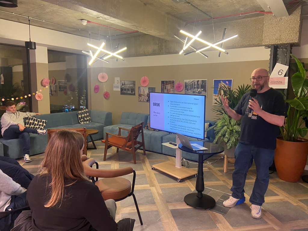 To close off the day I was one of the speakers at the Local Digital community meetup giving a lightning talk about our Open Referral work. It was a really interesting set of speakers with talks that touched upon adult and social care, housing, digital planning, improving self-serve directories and lots of references to data standards – as I was up last I was able to do the trick of referring back to earlier talks and points which made it all seem a bit slicker than it was 🙂