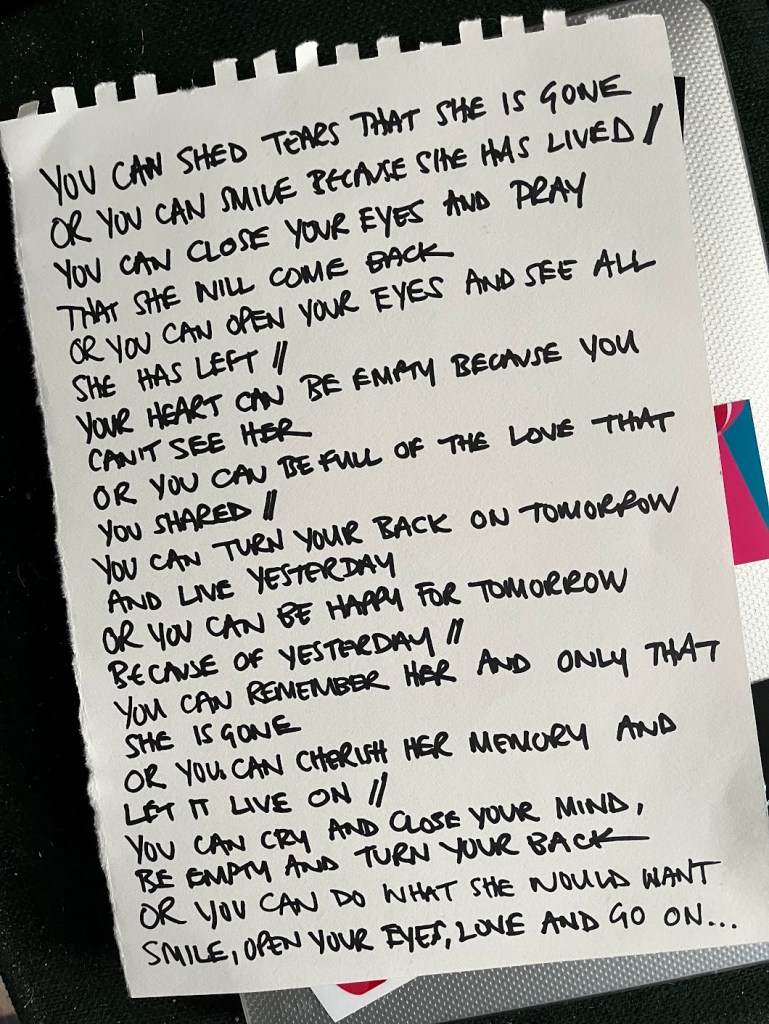 The funeral was hard. I gave a reading which almost broke me – not sure my voice has ever wobbled that much and I couldn’t even look up for fear of making eye contact with my mum and that leading me to fall apart. I did it though and I’m pleased I did.