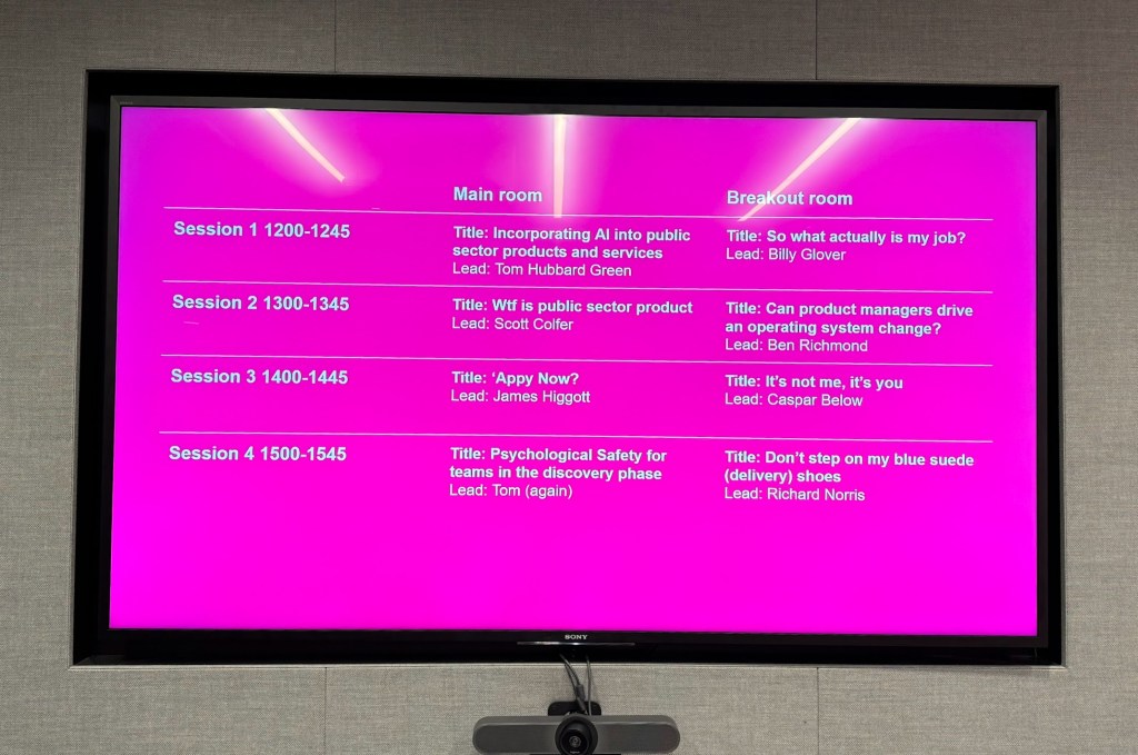 Debbie, Steve and I (with considerable help from James and Tom) convened the latest Product for the People unconference yesterday. For those that don’t know this is a (very) minimal viable unconference for people interested in product management and approaches in a broad church of public service. Yesterday we had people from central and local government, the NHS, charities and consultancies who work in product, delivery, interaction design, marketing and more.