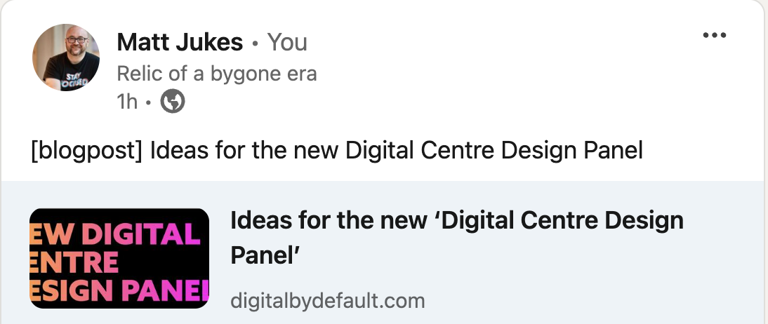 Which brings me to the blogpost I wrote sparked by Jeni Tennision joining the new Digital Centre Panel for DSIT. I think it reflects my main interests these days beyond the day to day of producing. Openness, capacity, capability, community and a bit of data. It seems to have gone down better than I expected – and has got me hoping again that 2025 is the year I find a way of focusing more on that kind of thing – much as I am enjoying this Product Lead lark at the moment.