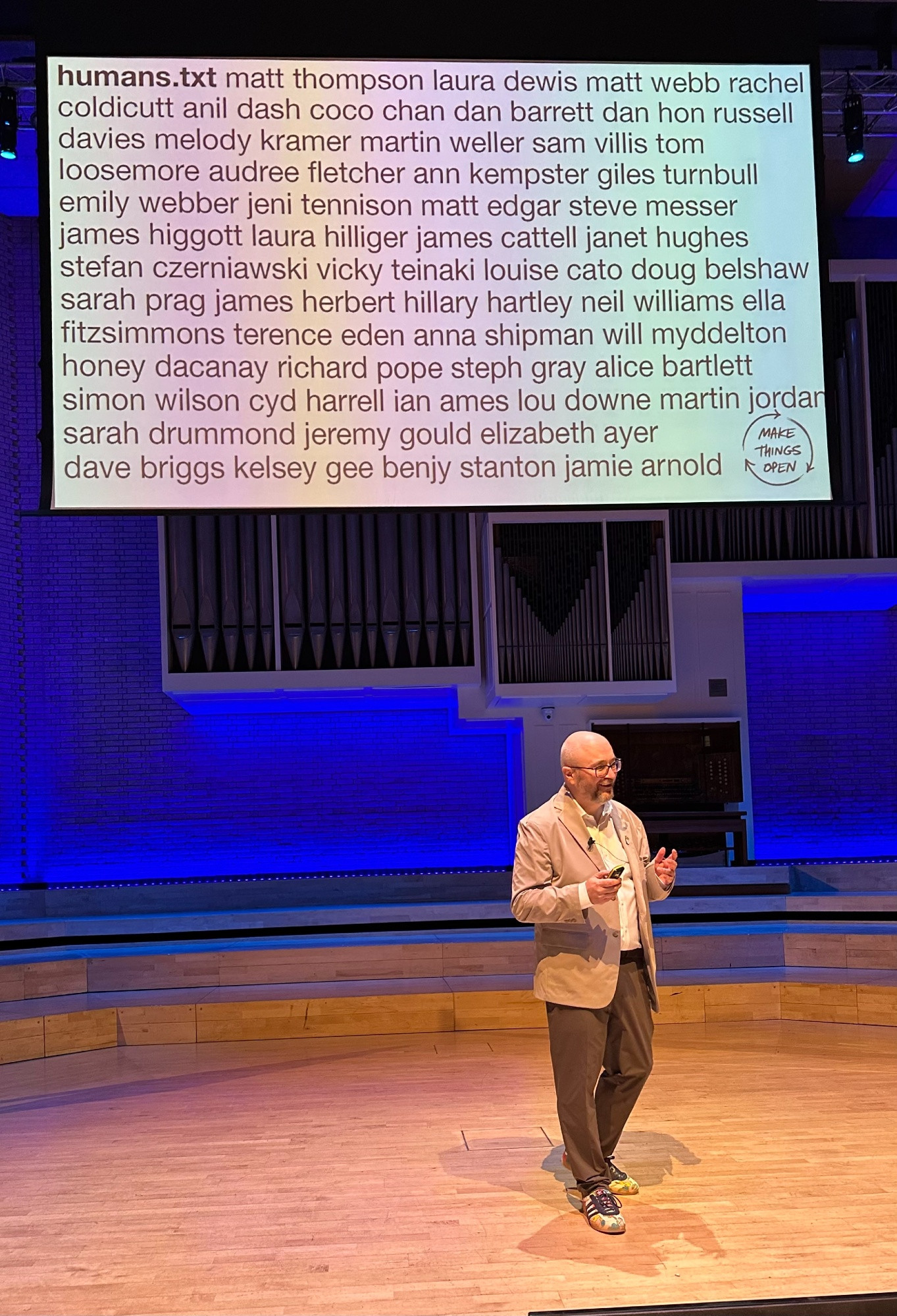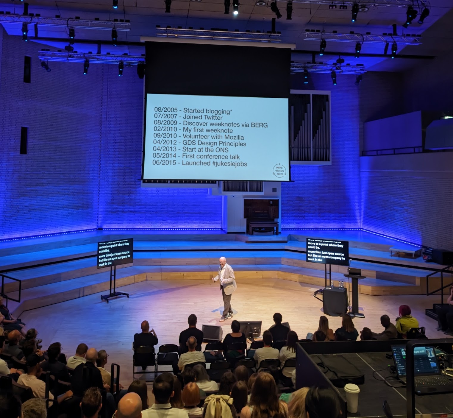 Things could not have been more different for my slot 😆. The audience did really feel engaged but they were leaned back, notebooks down. I’d been thinking about it as as much Netflix stand-up special as design conference keynote in the writing and I think maybe I leaned into that more than I realised 😅